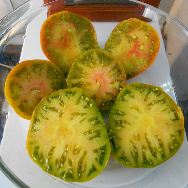 Томат «Зелений тітки Рубі» (Aunt Rubys green) - середньостиглий сорт томату. Висота рослини 1,60 м. Маса плодів від 350 грамів. Форма округло-плоска, колір зелено-жовтий. Один із найкращих зелених томатів форми біфштекс, у розрізі від холодно-зеленого кольору до жовто-рожевого. Набагато смачніше, ніж багато червоних сортів, смак солодкий, фруктовий.