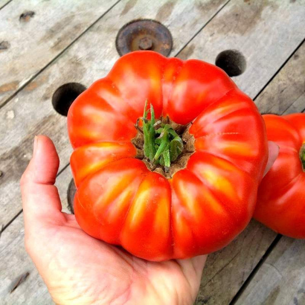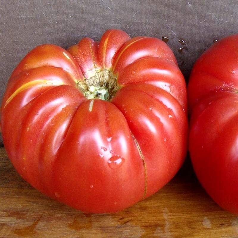 Все найкращі характеристики великоплідних томатів зібрані в одному сорті! Чудовий смак, гарна солодка м'якоть без ущільнень біля плодоніжки, врожайність і, звичайно ж, величезні плоди! Томат стійкий до розтріскування. Тріщин навіть після 7-денних осінніх злив. Можлива вага плодів більше 1 кг. Плоди великі, типу "біфштекс", на стадії зрілості дуже красивого рожевого (з перламутром) кольору, мінімальною вагою 300-500 грамsd, м'ясисті, солодкі, смачні. Цей сорт є ідеальним для свіжого споживання, а також для приготування соків та соусів.