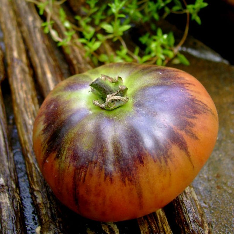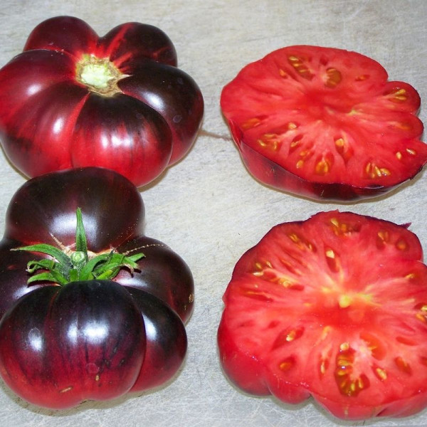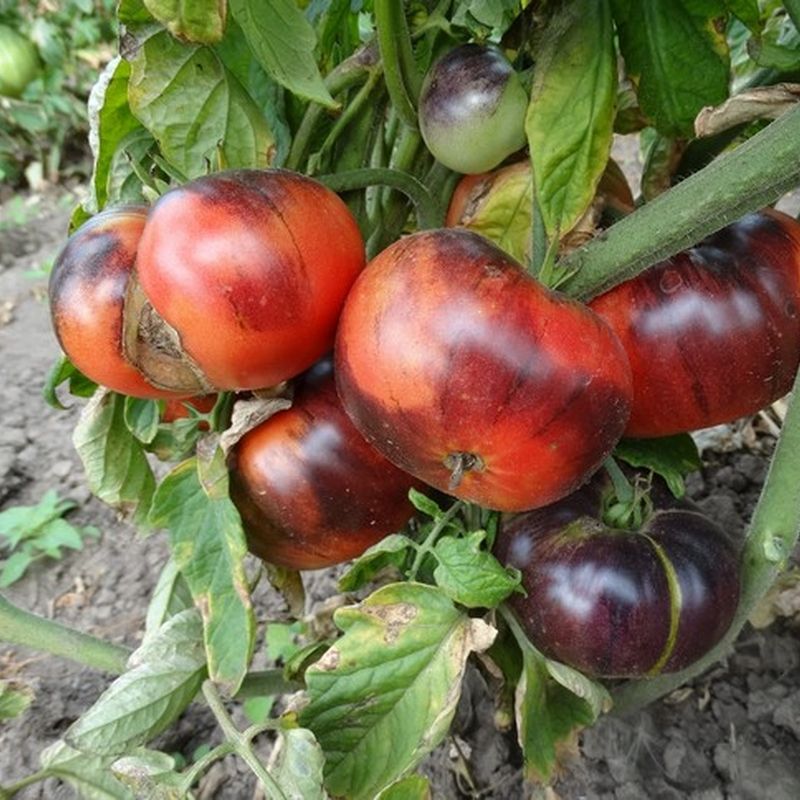 Цей неймовірно екзотичний сорт томату не залишить байдужим жодного городника – як любителя, так і професіонала! Кущі посипані великою кількістю красивих плодів, які при повному дозріванні під впливом сонця покриваються фіолетово-чорними плічками, смугами і мазками на пурпурово-рожевому фоні. Вага плодів 150-250 грамів, смак чудовий!