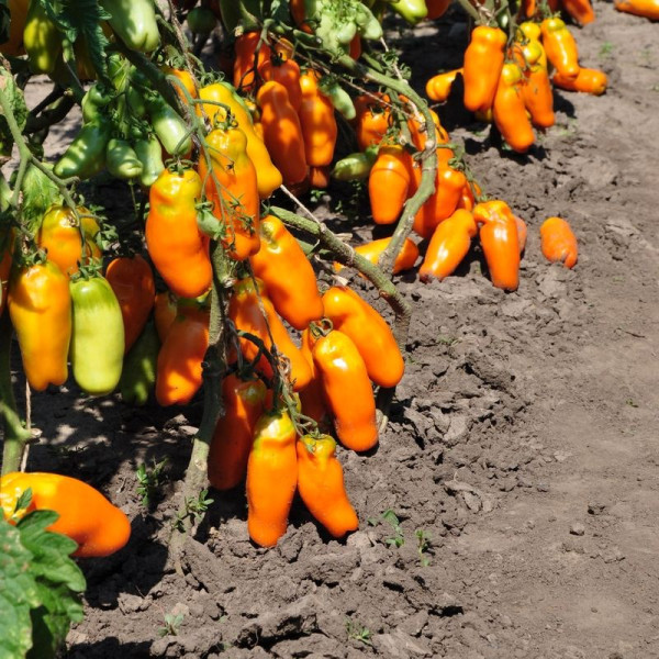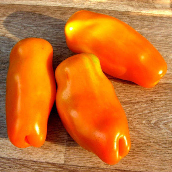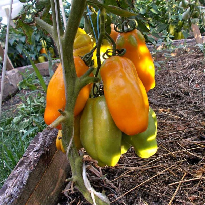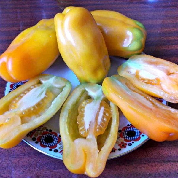 Кущ із звичайним листком, висотою до 1,8 метра, плоди зібрані в кисті (по 5-7 штук). Формувати цей сорт найкраще в 3 стебла. Плоди щільні, подовжені, роздвоєні на кінці. Нагадують сорт Аурія, тільки вони на стадії зрілості жовтого кольору і трохи дрібніші. Вага плоду до 150 г.