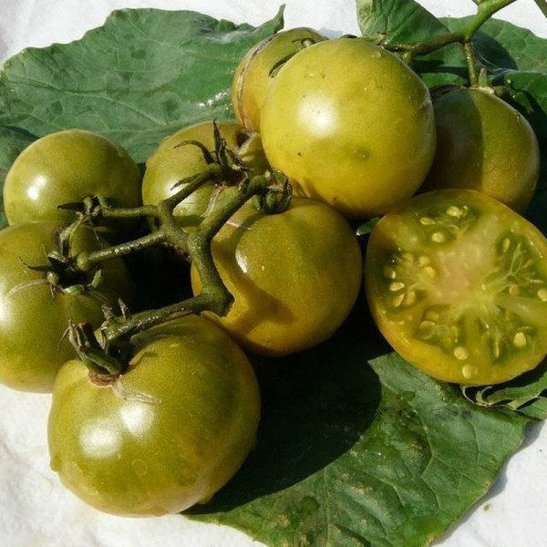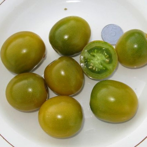 Томати ростуть переважно гронами, загалом по 8-10 шт. Плоди мають невеликий розмір та середня вага одного томату становить близько 50 грамів. Зростають вони круглої правильної форми та смарагдового забарвлення.