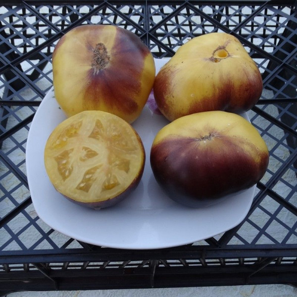 Томат «Великий білий + P-20» (Great White + P-20) – неперевершений сорт по солодощі серед білоплідних та синіх. Високий, середньостиглий, високоврожайний сорт із супер солодкими округло-плоськими плодами вагою 150-300 грамів. Половина плоду кольору слонової кістки, інша насичено-синя (фіолетово-коричнева).
