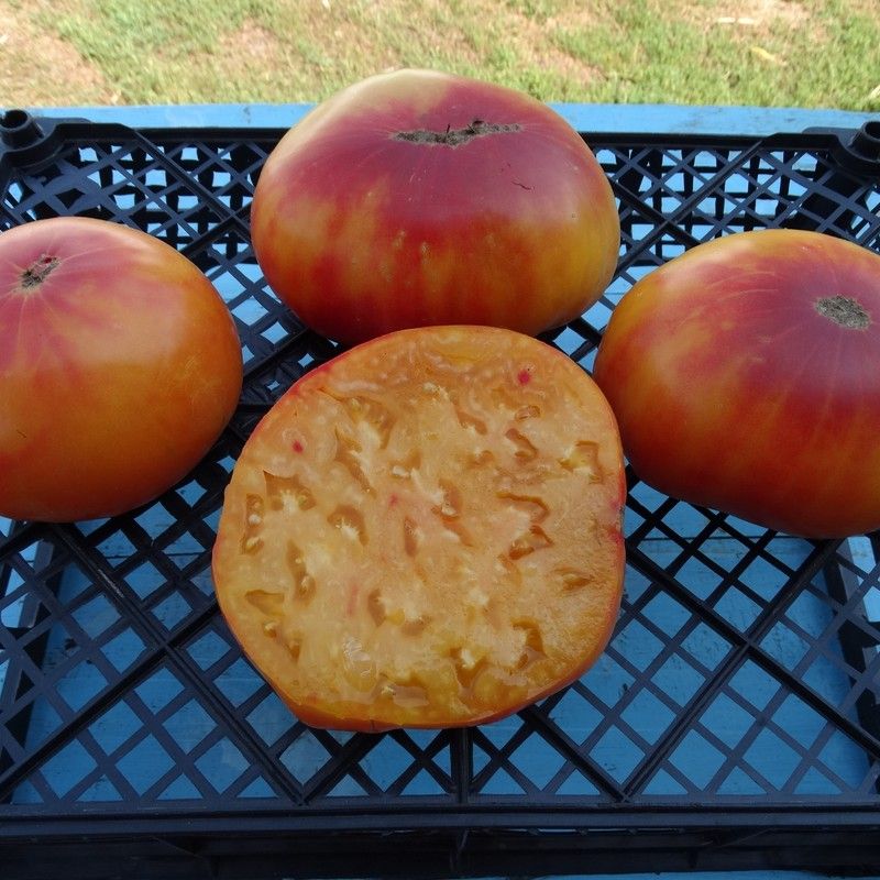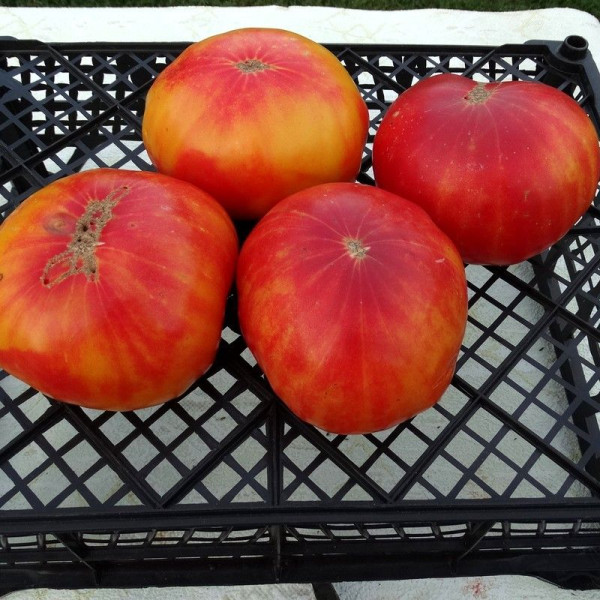Томат «Жовта Регіна» (Regina's Yellow) - високий, середньостиглий, врожайний, великоплідний супер сорт з густими кущами заввишки близько 1,5 метра. Плоди - добірні жовто-рожеві виключно одномірні гіганти, на диво щільні серед двоколірних. Форма округло-плоска, середня вага 300-700 грамів. М'ясисті, щільні, з мармуровою м'якоттю, дуже солодкі чудового смаку та приємного насиченого аромату.