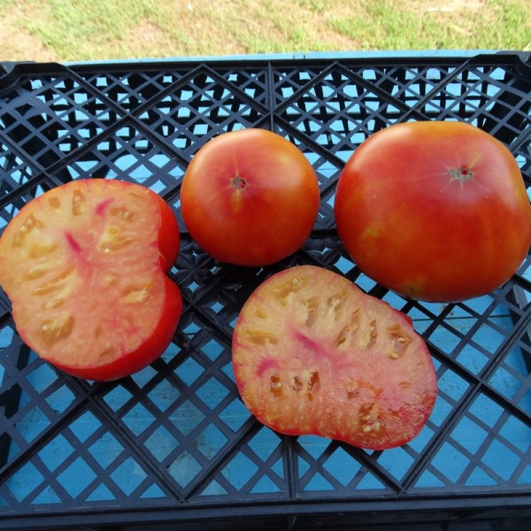 Зустрічаються плоди практично повністю червоні зовні, але всередині як належить оранжево-червоний «мармур». До кінця сезону фарбування стає більш інтенсивним.