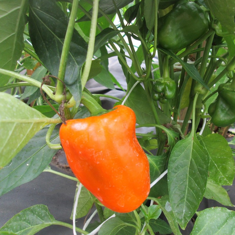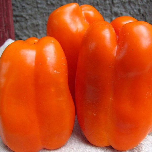 Плоди кубоподібні, в стадії технічної стиглості темно-зелені, в біологічному соковитому помаранчевому кольорі, товстостінні, 3-4-х камерні, вагою 160-200 грамів, соковиті, відмінного смаку без гіркоти. Товщина стінки 6-8 мм.