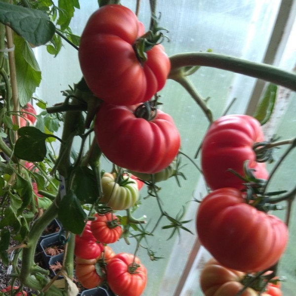 Для отримання максимального врожаю необхідно формувати 1-2 стебла. Сам кущ загалом висотою 1,5 метра. Плоди масою 500-700 г, перші можуть досягати до 1 кг, щільні, м'ясисті, плоскоокруглі, ребристі, червоного кольору.