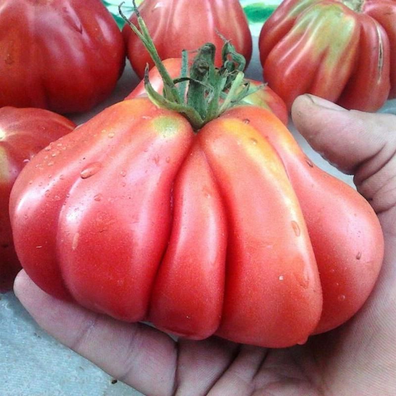 Томат «Шарпей» - індетермінантний, середньоранній томат (період плодоношення починається на 100-105 день після появи сходів) висотою до 2 м. Плоди красивого рожевого кольору, грушоподібної форми з великими ребрами, вагою 150-170 грамів. М'якоть щільна, соковита, м'ясиста, на смак солодка. Плоди трохи порожнисті, тому ідеально підходять для приготування томатної пасти.