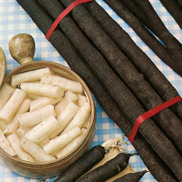 На добре окультурених ґрунтах коренеплоди виростають до 35 см у довжину та 3-4 см у діаметрі. М'якоть кореня біла, щільна, насичений молочним соком, має приємний аромат ванілі. Термін дозрівання 100-120 днів. Вага коренеплоду: 60-80 грамів.