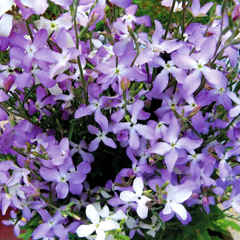 Матіола запашна (левкой) - однорічна ароматна рослина, заввишки 30–50 см. Квітки дрібні, діаметром 1,5–2 см, бузково-фіолетового забарвлення. Під час цвітіння виділяють сильний і приємний аромат. Використовується для оформлення клумб, кам’янистих гірок, балконних ящиків і садових ваз.