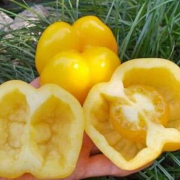 Томат «Ілюзія» – це середньостиглий сорт. Вегетаційний період від сходів на початок дозрівання 110 діб. Кущ високорослий, заввишки 1,5 м. Плоди фігурні, гладкі, масою 150-200 грамів, жовтого кольору, що ніби світяться зсередини, пустотілі, не містять соку, в них мало насіння.