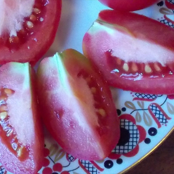 Плід сливовидної форми, з товстими стінками, рожевого кольору, масою 70-100 грамів, відмінних смакових якостей. Вирощується у відкритому грунті та у плівкових укриттях. Використовується для вживання у свіжому вигляді та консервації.