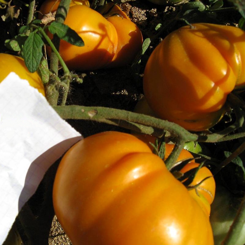 Плоди плоско-округлої форми, великі масою 200-350 г, відзначаються рівномірним помаранчевим забарвленням, без зеленої плями у плодоніжки. Для салату. Несприйнятливий до основних хвороб. Оранжевоплідний томат з високими смаковими та дієтичними якостями та підвищеним вмістом каротину.