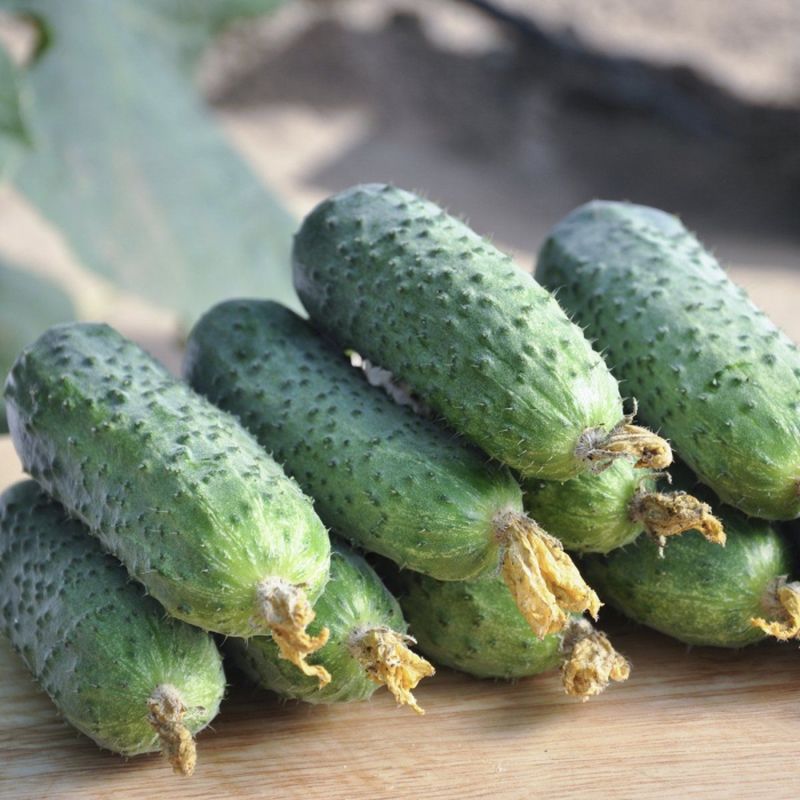 Огірок «Кущовий корнішон» - ранньостиглий сорт, вегетаційний період від сходів до початку плодоношення 45-50 днів. Рослина компактна, головний батіг короткий. Плоди формуються в основі куща віяловим чином. Плоди інтенсивно-зеленого забарвлення, великогорбчасті, чорношипі, довжиною 8-10 см, масою 80-90 грамів, хрусткі.