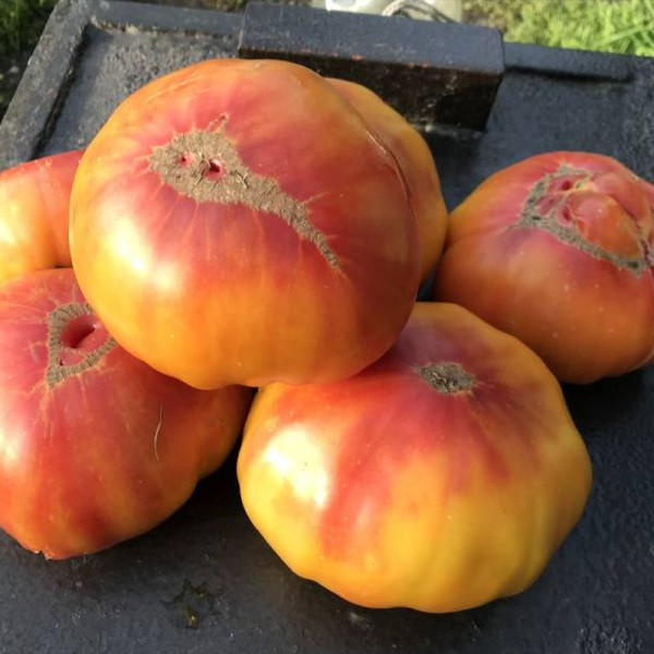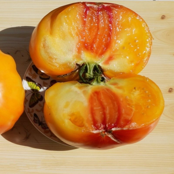 Томат «Оаксаканська коштовність» (Oaxacan Jewel) – середньопізній сорт, індетермінант, бі-колор. Плоди золотаво-жовті, мармурові, зі смугами рубінового кольору, плоско-округлої форми, вагою близько 800 грамів, солодкі. Сорт понад урожайний та стійкий до основних видів хвороб. Головне призначення томату - салатне, так само добре для переробки. Боїться сонце, вимагає притінення.