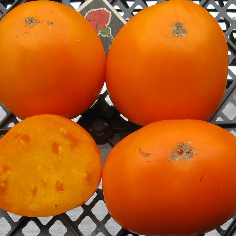 Томат «Суниця німецька жовта» - середньоранній лежкий сорт томату. Висота рослини 1,5 м. Плоди мають овальну форму, без гострого конуса на вершині, з дуже насиченим помаранчевим кольором, напрочуд щільні, смачні, в повній зрілості масою до 400 грамів.