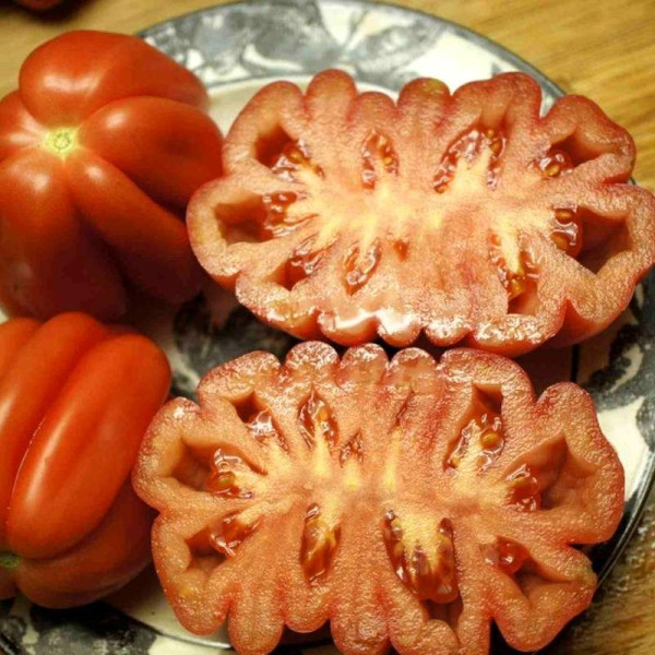 Томат «Gezahnte» (Гезахнте) – у перекладі з німецької «Зубчастий» – середньостиглий сорт. Кущ заввишки 1м. Енергійні кущі з тонким листям і фантастичною різноманітністю плодів рожевого кольору, грушоподібної форми, з сильною вираженою ребристістю, вагою 120-300 грамів. М'якоть щільна, не соковита з порожнечами біля насіннєвих камер.