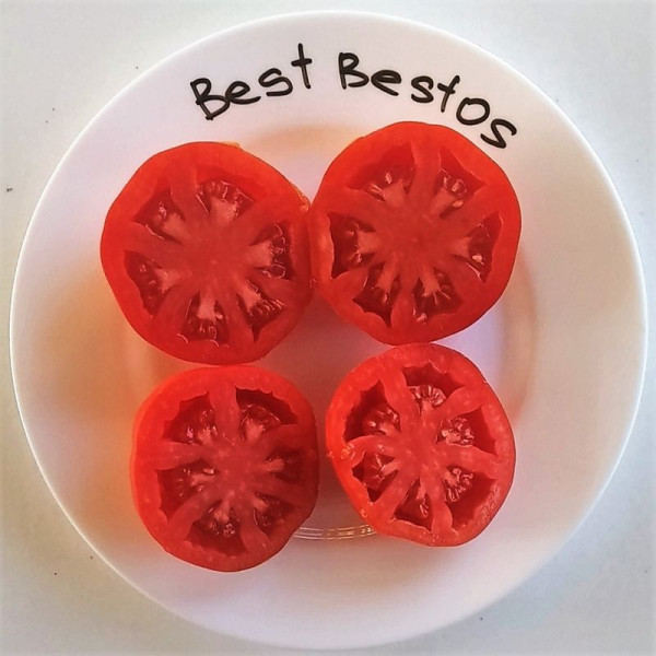 Томат «Найкращий» (Best Bestos, Бест Бестос) - середньостиглий надурожайний сорт. Рослини високорослі, до 180 см. Плоди червоного кольору, масою 200-600 грамів, овально-грушоподібні з невеликими реберцями, в розрізі нагадують квітку троянди. Дуже товста оболонка, м'ясисті, солодкі, соковиті.