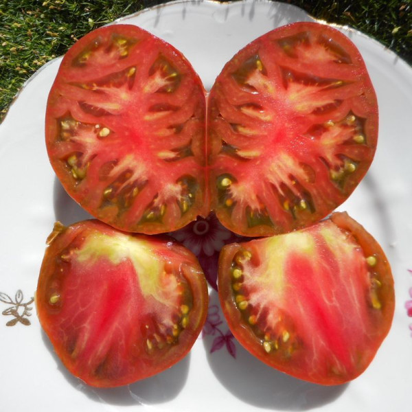 Tomato «Dwarf purple heart» - mid-season determinant variety. The bush is strong, 60 cm high. You can not form it. The fruits are heart-shaped, purple-red, weighing 80-120 grams. Harmonious sweet taste. The pulp is tricolor, the walls are thick. Productive and resistant to tomato diseases.