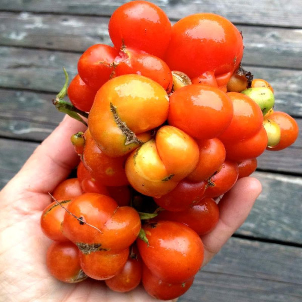 Такой томат удобно брать в дорогу, уникальный сорт, аналоги не известны! Вес до 200 грамм.