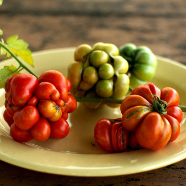 Томат «Райсе Томат» (Reisetomate Tomato) - сорт немецкой селекции. «Райсе» в переводе – «путешествие». Другие названия Чесночный или Томатомозг. Плоды неправильной формы, состоящие из отдельных сросшихся томатных долек, каждая из которых легко отделяется рукой. Куст индет. высотой 1,8 м.