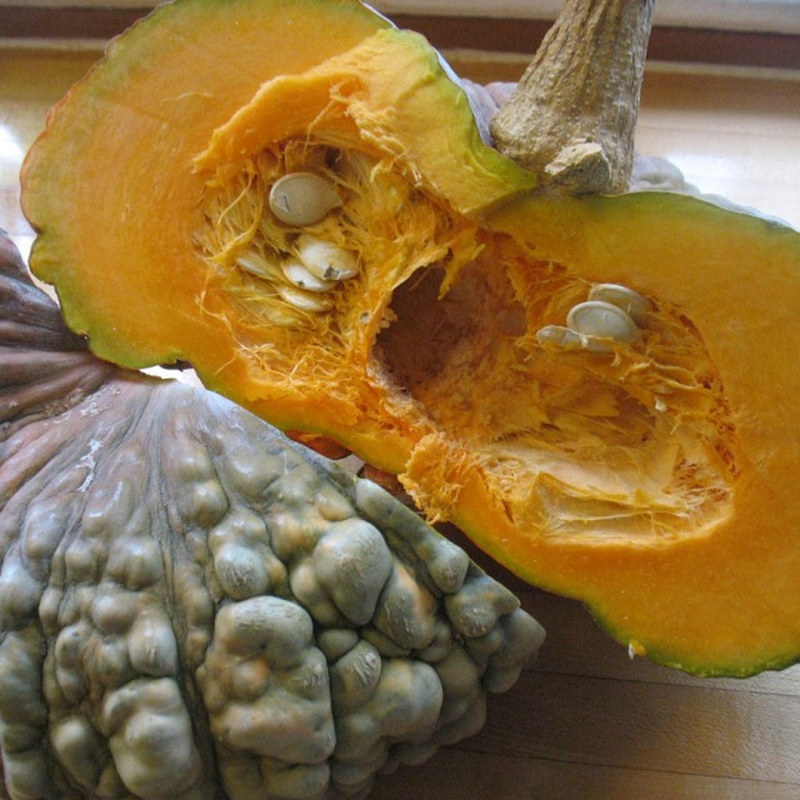 Тыква «Марина ди Кьожжа» (Marina di Kezhzha) - вегетационный период 50 дней. Выглядит как массивный тюрбан сине-зеленого цвета с пузырчатой оболочкой, весом до 10-ти килограмм. Семенная камера совсем незначительная. Желто-оранжевая мякоть отменного качества, сладкая и необычайно вкусная.
