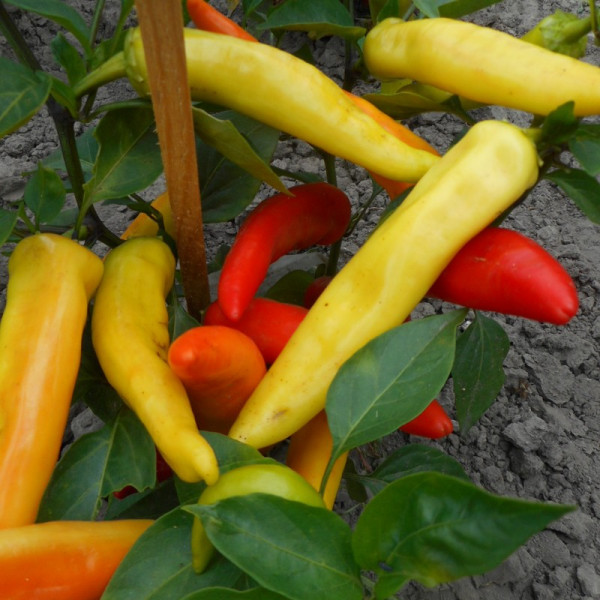 Перец острый (горький) «Голден Еллоу Вакс» (Golden Yellow Wax) - раннеспелый сорт родом из Венгрии. Высота куста 40 см. Сорт однолетний. Урожайность высокая. Плод конический, глянцевый, окраска в технической спелости лимонно-желтая, в биологической – красная. Можно собирать плоды и когда они еще желтые. Масса плода 60 грамм, толщина стенки 4 мм. Подходит для приготовления множества блюд.