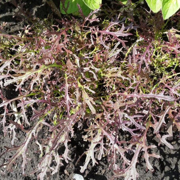 Салат горчичный «мицуна красная» - японский вид горчичного салата с красными листьями. Cкороспелый сорт, срок от посева до сбора урожая не превышает 25 дней. Листья узкие, мелко прорезные. По свойствам салат похож на рукколу, хотя имеет более нежную текстуру. Вкус пряный с легким ароматом свежемолотого перца, неповторимый и особенный. Способствует укреплению иммунитета, предупреждает онкозаболевания.