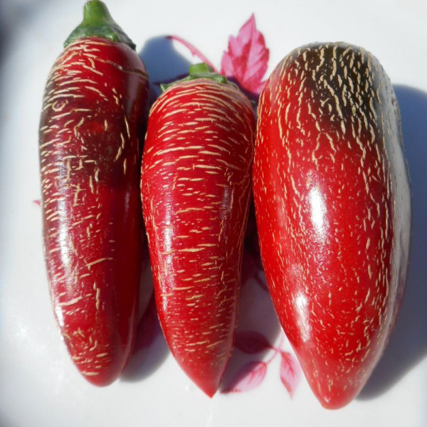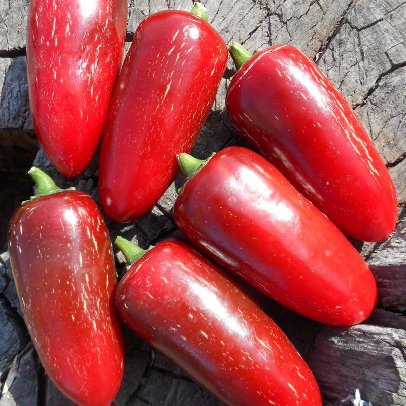 Перец острый (горький) «Халапеньо Таджин» (Jalapeno Tajin) - раннеспелый сорт халапеньо с ароматными и толстыми плодами. Плоды красного цвета с белыми трещинками. Высота куста 40 - 50см. Урожайный сорт. Сроки от посадки до созревания 100 дней.
