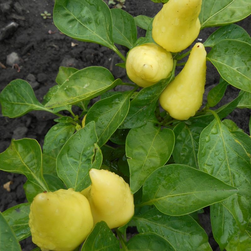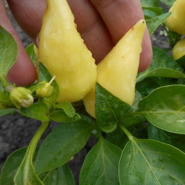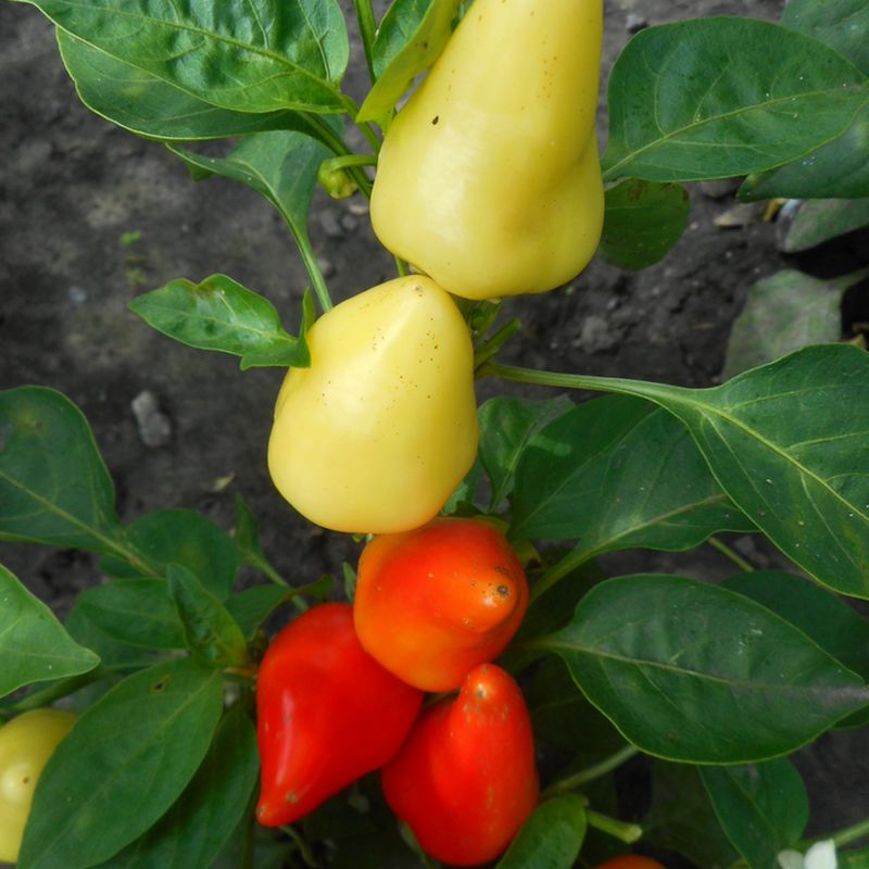 Плоды конусовидные среднего размера от зеленого до красного цвета при полном созревании. Острота от слабой до умеренной, но могут попадаться плоды и среднеострые. Стенки плодов толстые, мясистые, сочные. Куст высотой от 30 – 50см. Урожайность высокая.