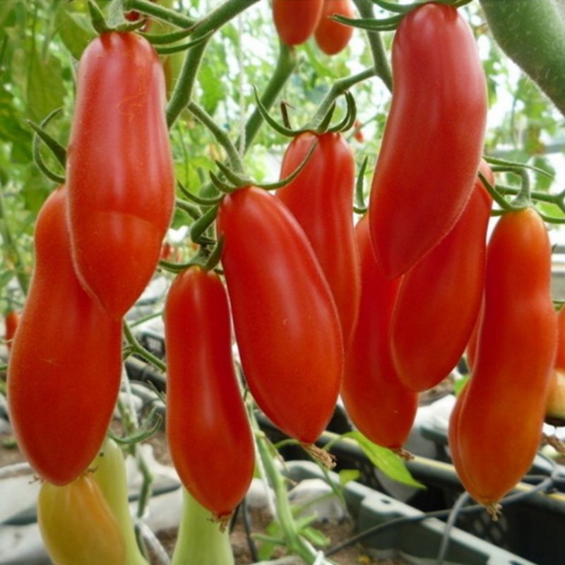 Томат «Красный банан» - высокоурожайный, раннеспелый, от всходов и до начала созревание всего 90-95 дней. Куст томата детерминантный, высотой до 50 см, с простыми соцветьями, на кисти формируется от 8 до 12 плодов.