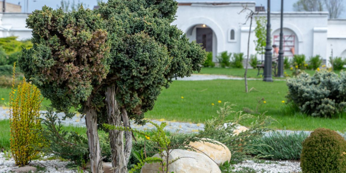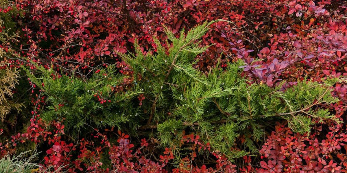 Ялівець поруч із листяними кущами