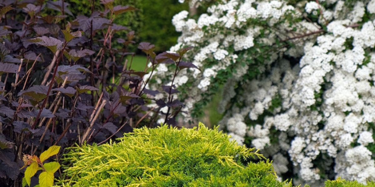 Не лише хвойні, а й декоративно-листяні кущі при правильному поєднанні чудово гармонують з ялівцем.